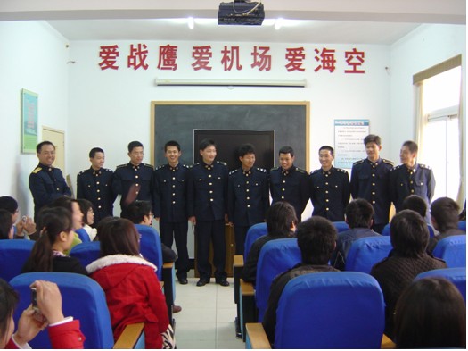 92138部队一中队指导员高西涛和部队的战士们热情地接待了我们。在上午的参观学习中,同学们分成9个小组,在部队战士的带领下,参观了战士们的宿舍。洁白的床单、整齐的物件、方方正正的军被让同学们感受到了军队生活的简朴和纪律的严明。之后,师生们零距离地观摩了只有在报刊影视中才见过的军用轰炸机,这让大家兴奋不已。在排列整齐、列队侯飞的战鹰前,同学们都很激动,大家排队登上飞机,用相机纪录下这难忘的经历。