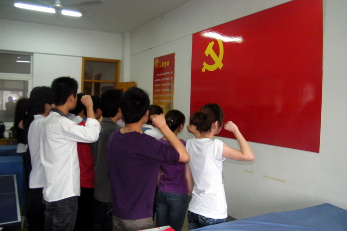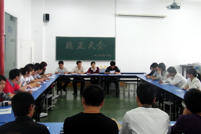 大会按照严格的组织程序,首先由45名申请转正的预备党员一一发言,向党组织汇报自己预备期的政治思想、学习、工作和生活等方面的情况(在企业实习的预备党员还特别汇报了实习情况),陈述了自己取得的进步和对自身不足之处的整改情况。与会的党员教师从党的基本知识、如何发挥先锋模范作用等不同方面进行了提问,预备党员一一做答,并虚心听取意见。随后党支部正式党员对他们的转正申请进行了投票表决,一致同意这45位预备党员按期转为正式党员。最后,举行了入党宣誓仪式。