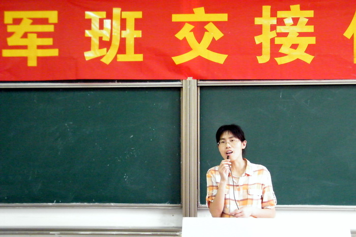 交接仪式上,新老建军班的同学都做了发言,表示他们将秉承和发扬“爱岗敬业,自强不息”的建军精神,奋发图强,努力学习,为轻院争光。