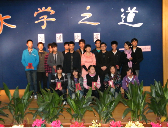来自10级各班的12名选手参加了此次比赛。比赛现场气氛热烈,台上代表激情演讲,选手们激情昂扬,尽情阐述着他们心中的大学之道。台下观众认真倾听,并不时为他们精彩的演讲而爆发出阵阵掌声。经过一番激烈的角逐,来自10电设331班的潘磊同学最终摘得了本次演讲比赛的桂冠。最后评委老师为获奖选手颁发了荣誉证书,比赛在一片热烈的掌声之中圆满结束。