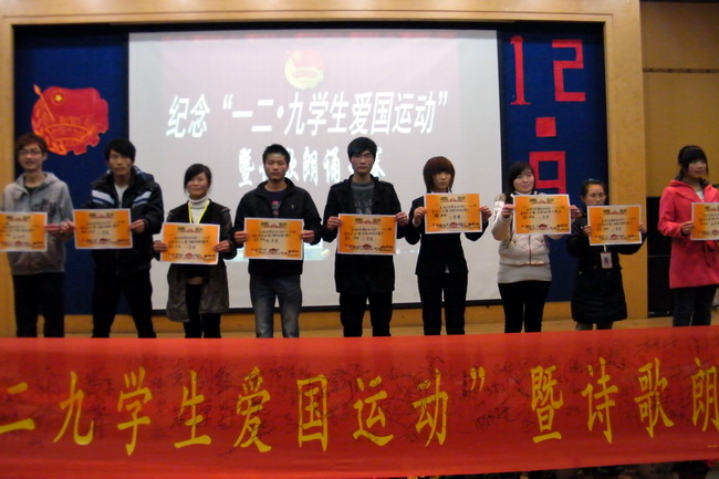 此次朗诵比赛分为个人赛和团体赛,评审团由09级各班团支书组成。最后本次比赛在电子系十佳歌手李雪娇演唱的歌曲《歌唱祖国》中圆满结束。