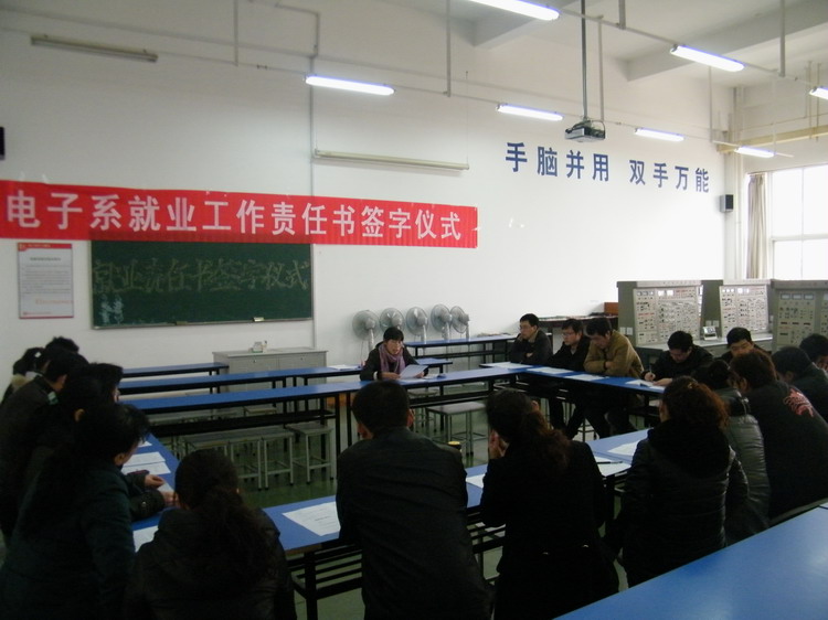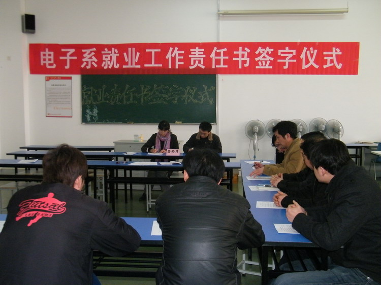 会上,庄老师对2010年的就业工作做了总结和回顾,解读了《2011年电子系就业工作责任书》,特别强调麦可思调查的意义和重要性,动员班主任充分调动毕业生的主动性,积极参与麦可思调查。庄老师要求各班主任做好2011届毕业生就业的各项工作,积极进取,努力把2011年的就业工作做得更好。最后,庄书记与各班主任分别签订了《就业工作责任书》。