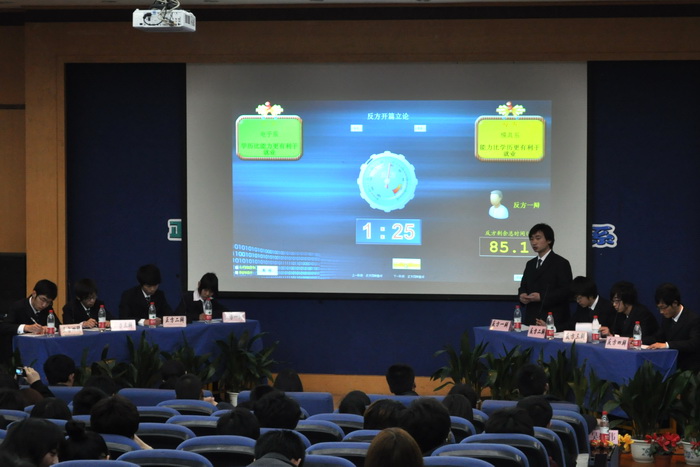 来自各系共八支代表队参加了公司2011年“建军杯”辩论赛,他们积极参与,充分准备,为我们奉献了一场又一场精彩绝伦的比赛。总决赛上,电子系代表队和模具系代表队围绕“学历还是能力让老员工更利于就业”这一辩题展开辩论。在历时一个多小时的激辩交锋中,双方辩手都围绕着本方观点,拿出古今中外的典型例子,在申明自己立场的同时,也频频发问把对方的观点推倒。这场唇枪舌战自然赢得了台下观众阵阵热烈的掌声。