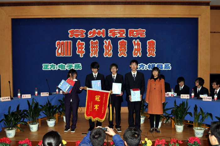 4月7日晚,常州轻院2011年“建军杯”辩论赛总决赛暨闭幕式与颁奖典礼圆满落幕。总决赛评委由院团委副书记嵇天培老师,公司党委宣传部李颖老师、吴佳伟老师,院团委汪洋老师,教务处高晓东老师担任,模具系王晓骏老师以及各系分团委书记观摩了此次比赛。