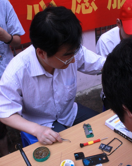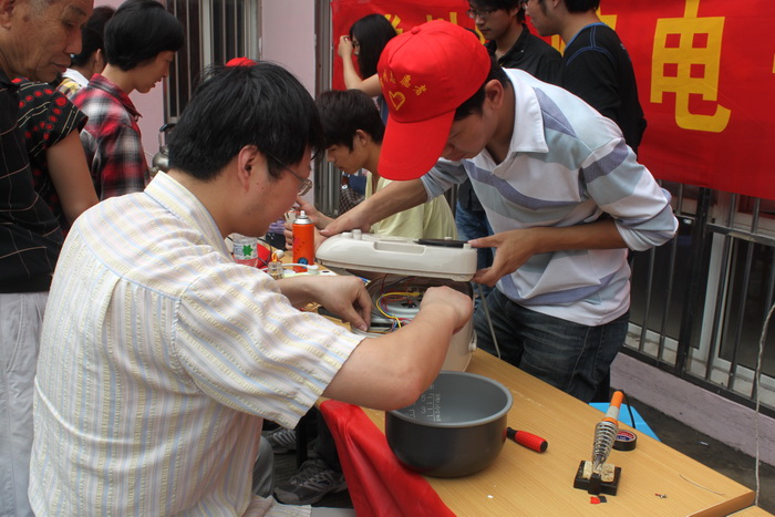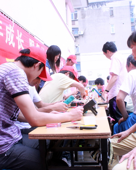电子系退休老教师、关工委副主任委员张富仁同志主动联系了勤业新村社区,也得到了社区的积极响应。志愿者们刚进社区,已经有大批群众在等侯欢迎了。本次社区服务主要分为三项:家电维修、手机维修和拍照服务,分别由电子系的家电维修协会、手机维修协会和流光映纪拍客俱乐部三个社团承办。本次活动成功维修家用电器18件,手机5部,为近百名社区居民拍了证件照,志愿者们将及时冲洗好的照片送到居民手中。活动得到了社区居民的一致好评!