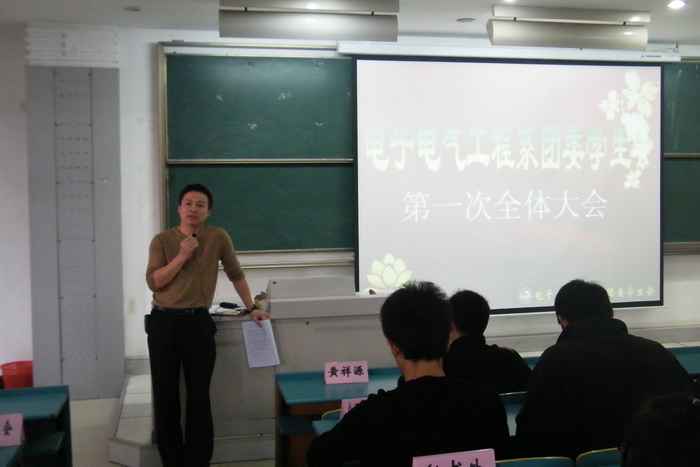 10月14日下午,电子系举行了团委员工会全体大会,副主任黄祥源出席大会并做了重要讲话,会议由系团委书记韩杨主持,10级团委员工会委员以及11级的新干事参加了会议。