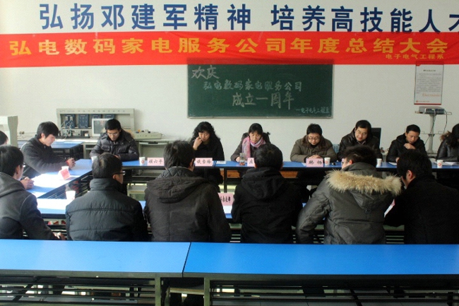 2011年12月16日,电子系召开了弘电数码家电服务公司第一次年会。系党总支书记庄丽娟,指导老师韩杨、顾六平、谈雪梅、李翊、陈蕾磊、于松、公司总经理蔡杏元同学和公司各部门的代表参加了本次年会。