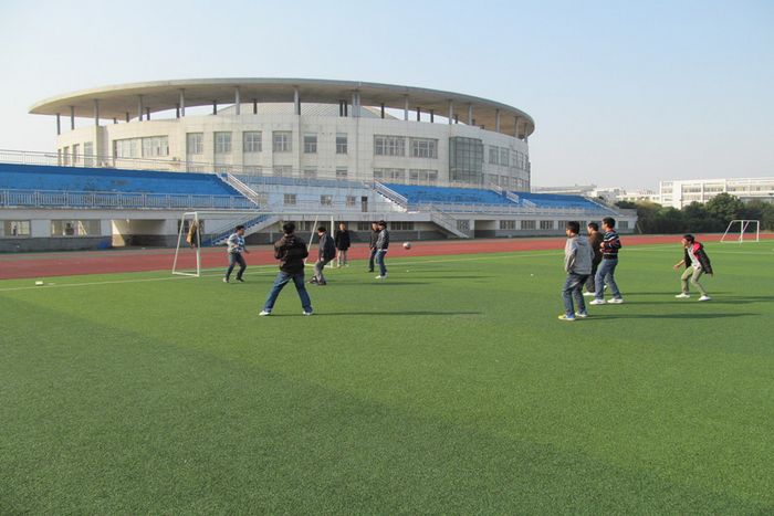 活动过程:周三下午,我们班一帮足球运动爱好者集体准备去足球场踢场友谊赛,大家自由分配组合,以半场为界开始比赛。假如此时你正好路过操场,会看到球场上有这么一帮人在健步如飞的踢着球,尽管他们的脚法不是很出众,甚至有点生硬,可是听着他们的笑声,你会被他们感染而希望也加入到他们的队伍中,这便是我们班的一帮足球发烧友,如此crazy!