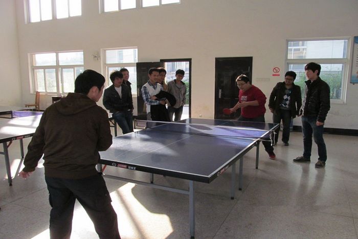 活动过程:继篮球赛,足球赛,羽毛球赛开展过后,我国国球――乒乓球也“不甘寂寞”。由219宿舍牵头,几名乒乓爱好者在周五下午举行了一次交流赛。期间不时有同学发出了喝彩声,将气氛推到了高潮。在回去的路上大家还热烈的讨论了各种发球技巧。