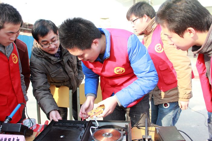 电子系退休老教师、关工委成员王方大同志主动联系了马杭社区,也得到了社区的积极响应。志愿者们刚进社区,已经有大批群众在等侯欢迎了。本次社区服务主要分为三项:家电维修、手机维修和拍照服务,分别由电子系的家电维修协会、手机维修协会和流光映纪拍客俱乐部三个社团承办。本次活动成功维修家用电器15件,手机8部,为近百名社区居民拍了证件照,活动得到了社区居民的一致好评!