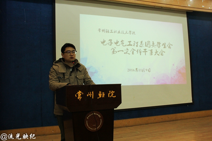 伴随着激情澎湃的共青团团歌,大会拉开了序幕。首先,韩杨老师为本次大会作动员讲话,他首先对新干事的加入表示祝贺与欢迎。同时对今后的工作提了一些要求和期望,希望他们在今后的工作中端正自己的工作态度,提高自己的工作能力,焕发新的光彩。古人云:心有多大,舞台就有多大;韩老师提出舞台有多大,我们的心就要有多大,希望他们今后能够明确目标,严格律己,开拓创新。最后要求全体成员谨记电子系团委员工会的格言:只有完美的团队,没有完美的个人。