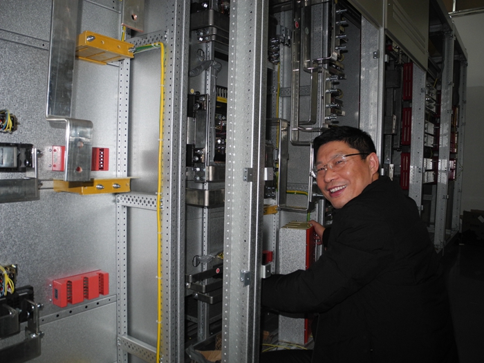 “当年老师教我专业知识,今天我向老师汇报专业成就”——王礼伟向母校的任课老师和班主任介绍他的电柜产品