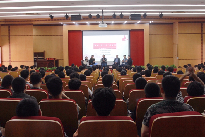 莅临现场与同学们分享故事的四位嘉宾分别是:“领路人”电气公司经理蒋正炎、“筑梦人”金牌教练韩迎辉、“同行人”2016级员工代表段德科、“身边人”2017级员工代表邵佳龙。