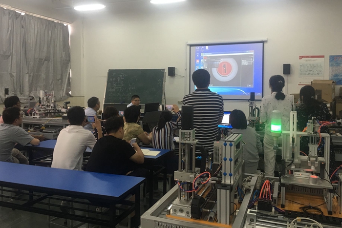 自动线装调技术培训邀请了浙江亚龙教育装备股份有限公司工程师进行升级版双PLC系统自动线培训,围绕最新的三菱FX5U、西门子S7-1200、TIA全集成自动化软件、智能视觉检测等方面,培训教师动手练习、互相指导,掌握智能装备技术所需新技术、新材料、新工艺、新设备。新购置的8套YL-335升级版双PLC系统自动线,也将用于智能控制专业群核心课程教学,四新技术融入课程内容。