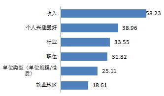 总体职业期待吻合度:2018届毕业生目前工作与自身职业期待的吻合度为67.58%;毕业生认为目前工作与自身职业期待不符合的主要方面是“收入”(58.23%),其次是“个人兴趣爱好”(38.96%)“、行业”(33.55%)等。