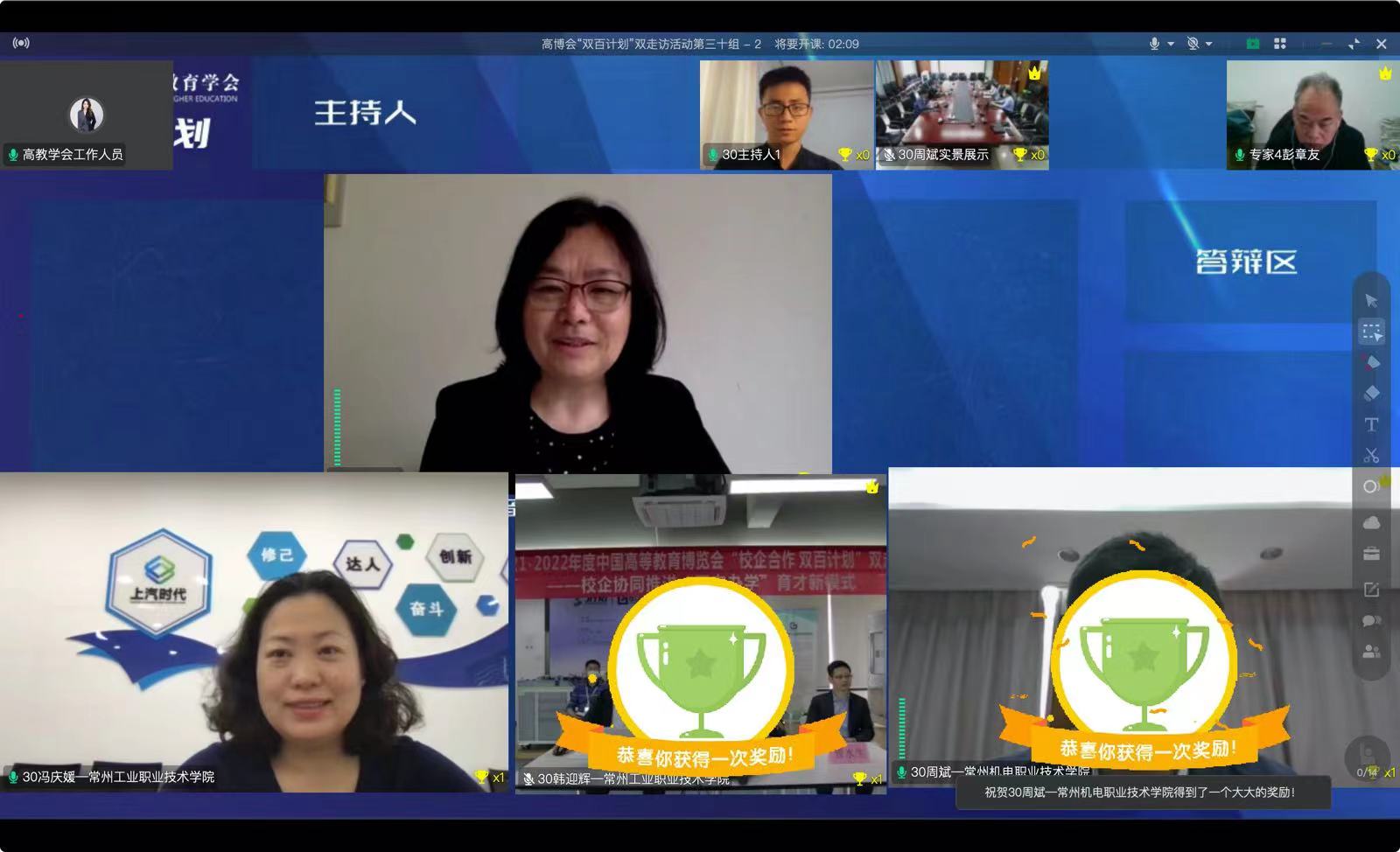 5月19日下午,中国高等教育博览会“校企合作 双百计划”专家组对公司党总支进行线上走访,参加此次双走访活动的专家组组长为苏州工业园区服务外包职业公司副董事长王颖,专家组成员为华北电力大学工程训练与创新创业教育中心主任王秀梅、上海大学教务部常务副部长彭章友。公司党总支书记冯庆媛,携手企业方代表昆山人力资源市场总监赵刚、昆达电脑科技公司(昆山)有限公司人事总监翟玉香、上汽时代动力电池系统有限公司人事总监张凌一及相关教师出席线上走访活动。会议伊始,专家组组长王颖介绍了“双百计划”双走访活动的背景和考察要求,并为公司党总支案例《构建“党建+校企合作”思政育人模式》颁发2021年度“双百计划”典型案例提名证书。