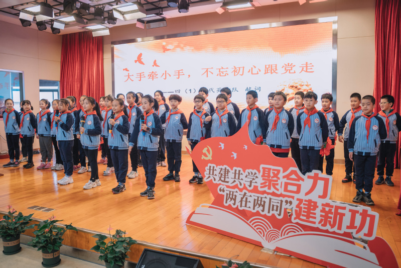 党课激发了在场小员工的爱国热情和长大后为祖国作贡献的美好愿望,博爱小学四(1)恽代英中队的少先队员深情献词。“少年强则国强,大任担当童心向党,奔赴远方路在脚下,我们都是追梦人。”少先队员们用慷慨激昂的誓言,坚定为共产主义事业而奋斗的信念。“请党放心,强国有我!”报告厅回荡着少年们的铿锵誓言。