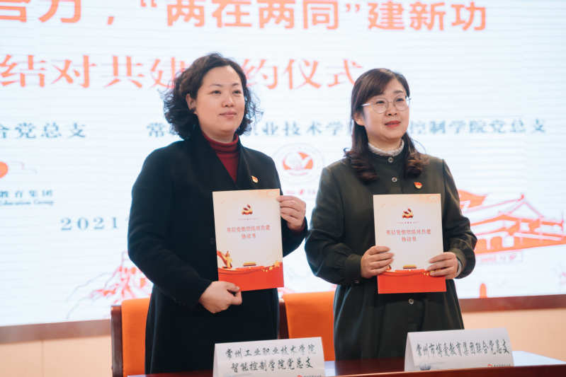 冯庆媛和柴曙瑛签署共建协议,双方党支部结成“党建共建单位”,彼此交流党建工作经验,联合开展党建活动。
