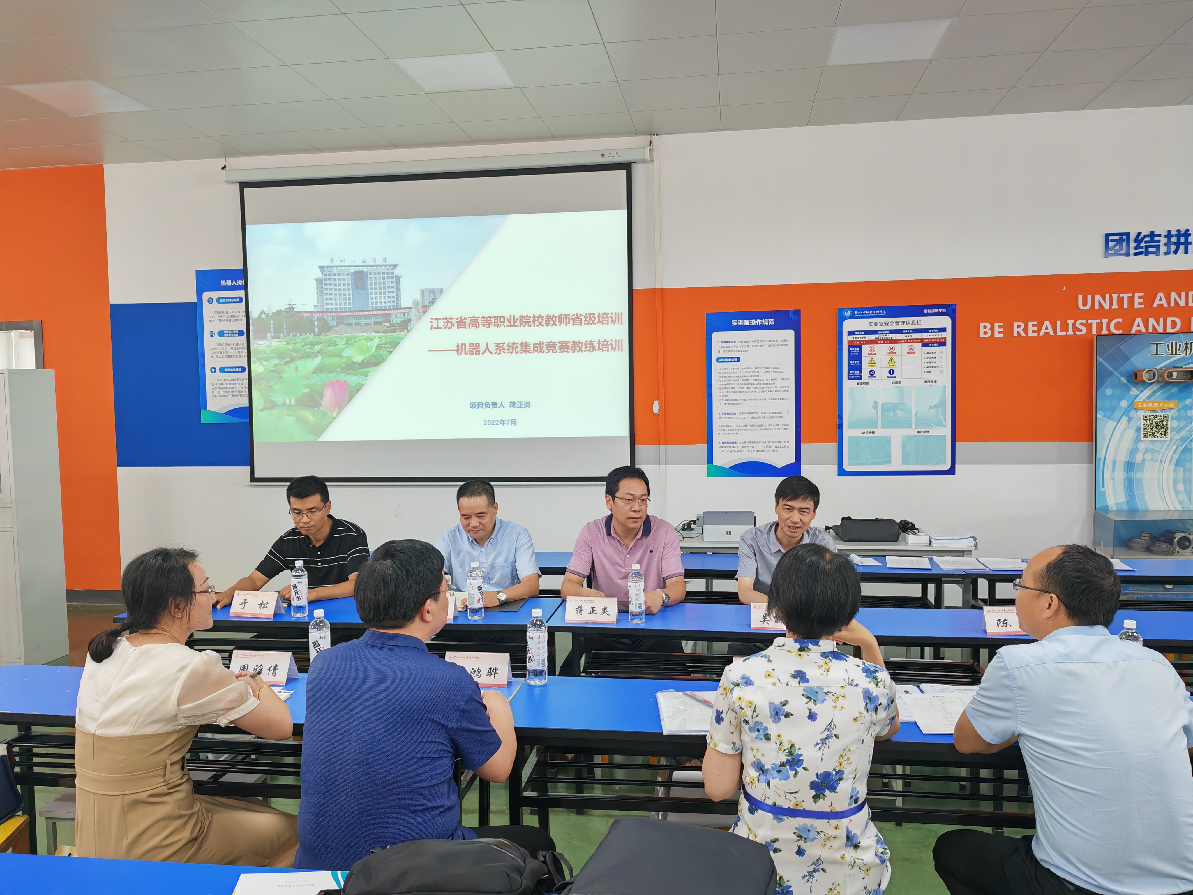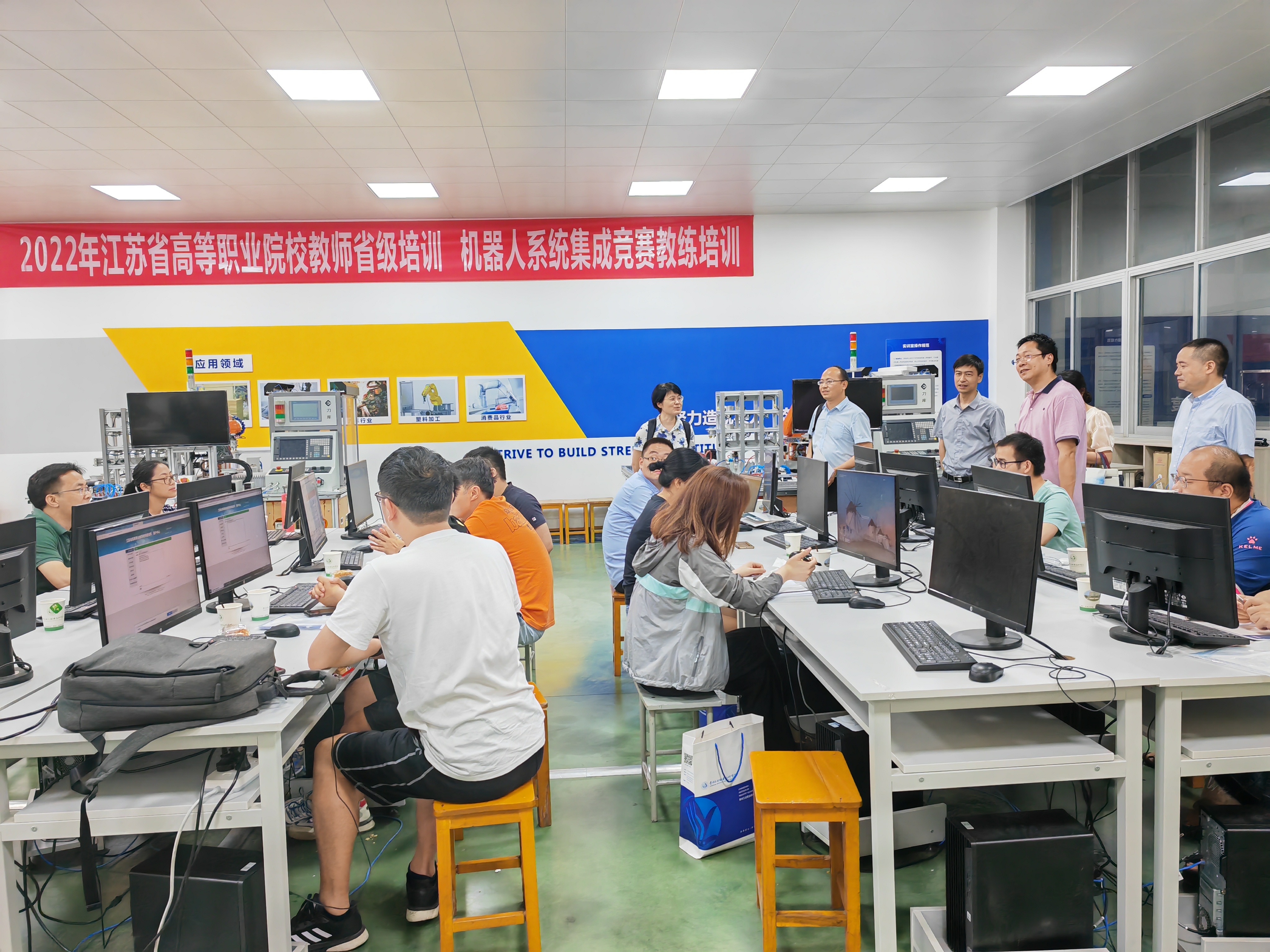 为进一步加强培训管理,提高培训质量,及时总结培训经验,7月22日,江苏省教育厅教师工作处处长徐萍,中职教师培训中心主任曹鸿骅,高职师培中心主任聂伟进,高职师培中心国培项目主任周雅倩莅临公司调研“机器人系统集成竞赛教练培训”项目实施情况。副董事长吴丽云,球盟会经理蒋正炎陪同调研。