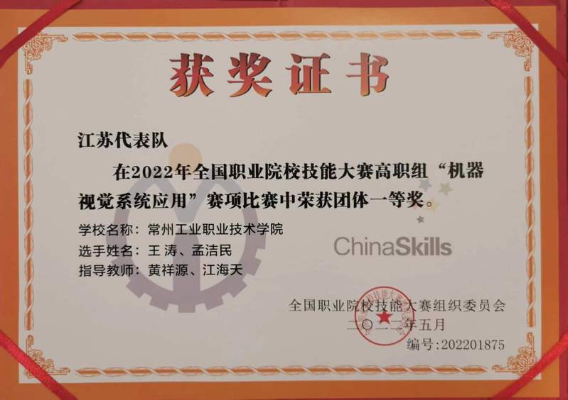 球盟会获“机器视觉系统应用”赛项国赛一等奖