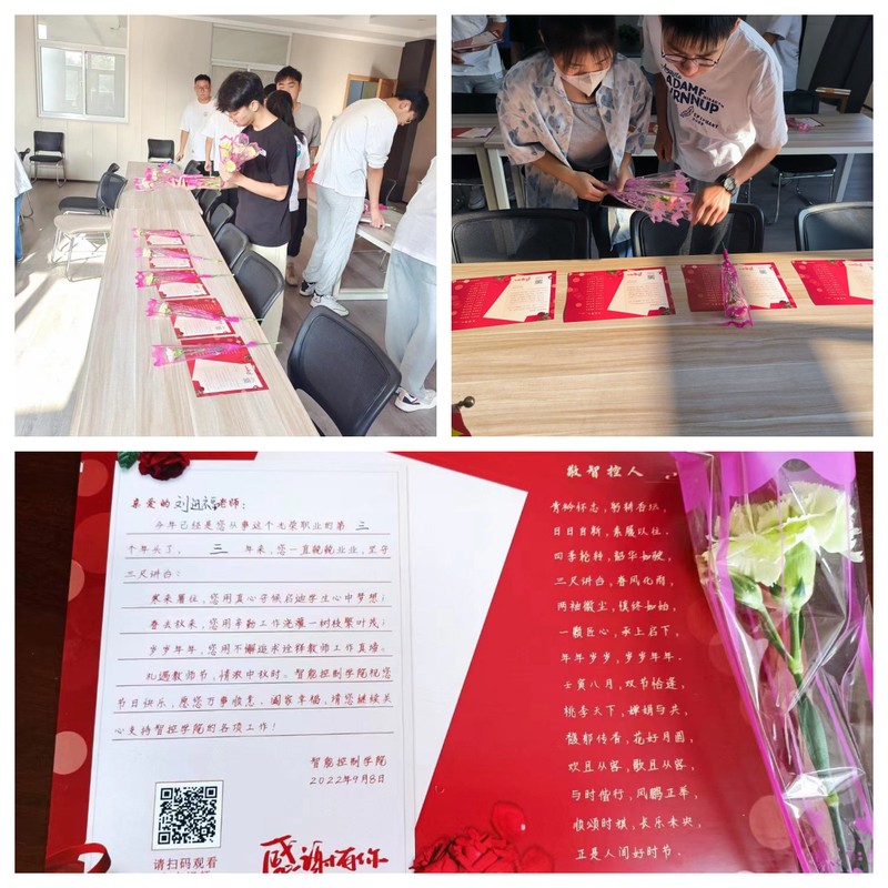 9月9日上午,员工代表分别将贺卡和鲜花送给自己尊敬的老师们。每一张贺卡上刻有员工们对老师们对感恩与祝福,工程师训练营的小工匠们放下了平时的害羞,道出了对智控公司金牌教练的心里话,一块块奖牌的背后是员工们的辛勤汗水,更是老师们的无私指导,声声感谢之语,浓浓感恩之情;“我们会牢记您的谆谆话语,以精益求精之决心,以持之以恒之耐心,以爱岗敬业之忠心,以守正创新之雄心,传承与发扬我们心中的工匠精神。”员工们富有感情的诗朗诵,表达的是对老师谆谆教诲、言传身教下的体悟与誓言。传承建军基因、发扬工匠精神,感恩有您;辅导员是距离员工最近的人,他们的工作和员工们的学习、生活息息相关,教师节的来临,同学们录制了对辅导员老师的祝福,简单的话语,真诚的祝愿,表达的是对辅导员们不辞辛苦的理解与感恩。