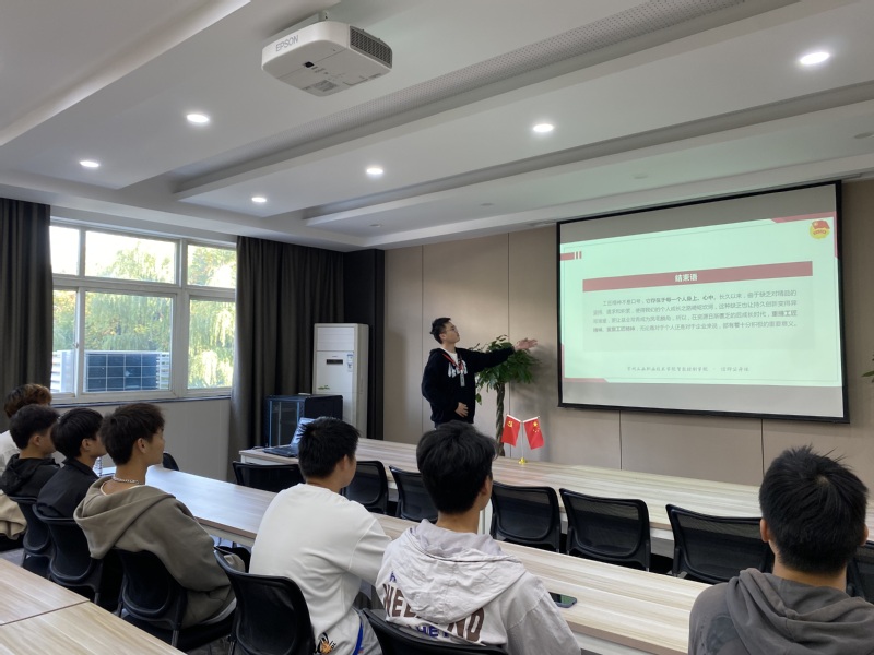 本次系列讲座由辅导员潘振宁老师主讲,潘老师从工匠精神的内涵与工匠精神的意义入手,诠释了工匠精神爱岗敬业、精益求精、协作共进、追求卓越的四个基本内涵。用从理念、风尚、产业升级三方面阐述了工匠精神对国家的意义。
