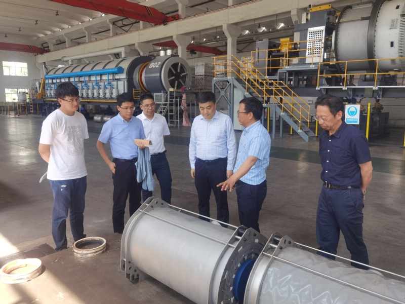 李明锁对席海涛一行表示热烈欢迎,详细介绍了公司在研项目“新能源锂电池粉体大口径正压气氛列管冷却高效回转窑”,对项目的市场需求和研究意义进行了深入剖析,并介绍项目研制历程中关键技术的攻关情况,以及所取得的科技成果。他提出,希望与公司建立深层次的合作关系,欢迎公司高层次人才下企业参与项目的研制与开发,助力企业解决卡脖子难题。陈永平、汪伟民带领大家到生产车间参观项目的研制进展情况。