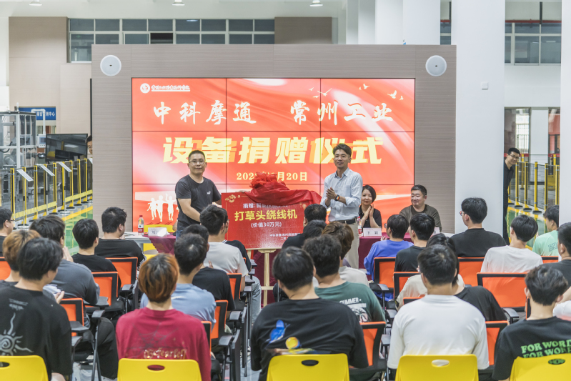 捐赠仪式上,中科摩通(常州)智能制造股份有限公司向公司捐赠打草头绕线机一台,总价值30万元。刘进福接受捐赠并致答谢辞。