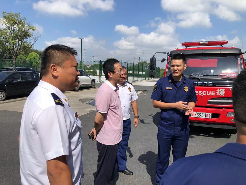 公司一行人在季成的带领下参观了支队消防员个人防护装备、日常训练器材、消防执勤车辆等。
