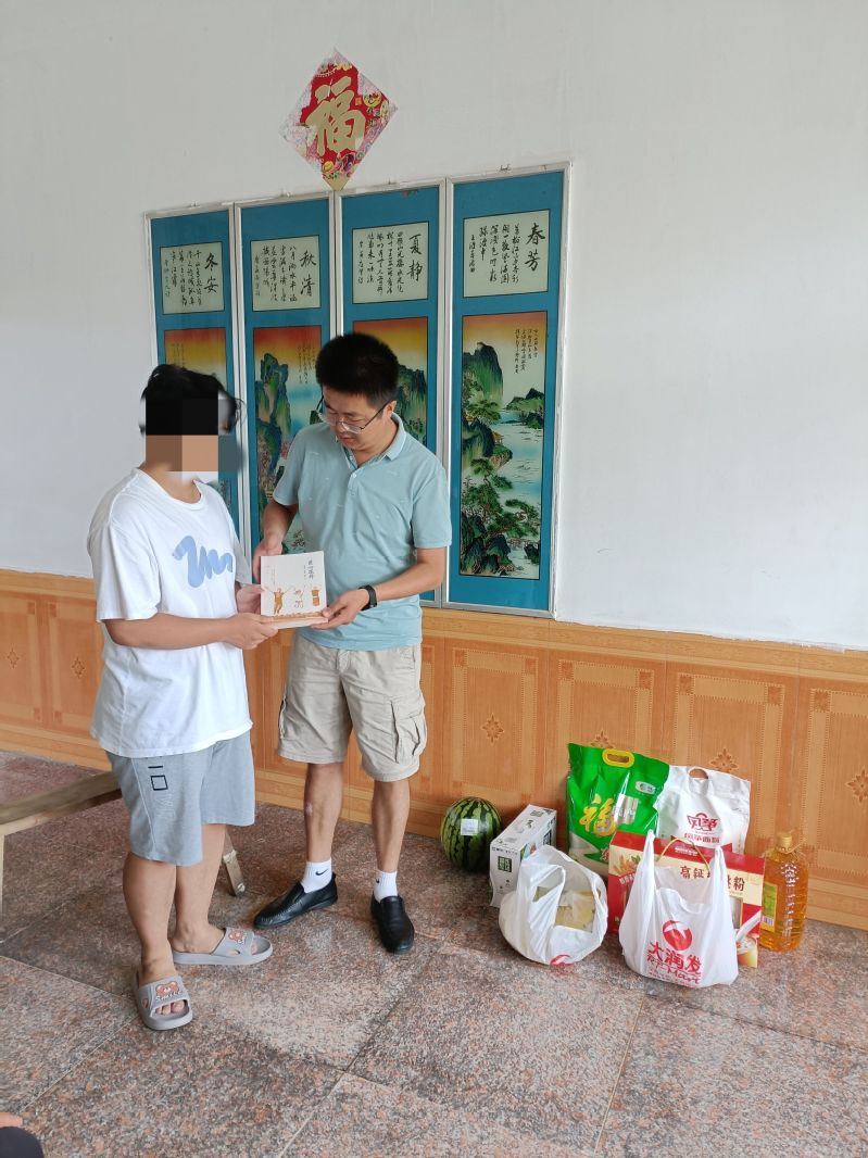 在实地家访中,球盟会辅导员周龙成老师来到盐城市射阳县,走进22级张同学家中。该同学父母离异后,父亲离世,母亲患病,由爷爷奶奶抚养,然而这几年爷爷也开始生病,家庭生活十分拮据。周老师与张同学爷爷奶奶亲切交谈,介绍员工在校期间的表现、取得的成绩、存在的问题和受资助情况等,关心员工的家庭情况、生活状况和心理状况,并送上了慰问品和一本由公司编写的《匠心花开》,把公司的关心温暖送到了家庭经济困难员工的家中。“公司为了我们家孩子上学的问题都这么尽心尽力,我们做家长的更要配合公司培养孩子成人成才,不辜负公司的期望。”张同学一家倍受感动、深感温暖,他们对公司老师冒着酷暑舟车劳顿前来家访表达感谢。