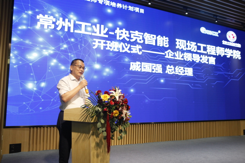 戚国强总经理回顾了公司近些年在校企合作、产教融合方面所做的工作,肯定了qm球盟会和快克智能装备股份有限公司在1+X项目、课程与教材以及本次江苏省首批现场工程师项目中合作的成果。同时也表态愿意就本次现场工程师项目的员工培养投入相应的人力、物力,培养具备符合国家战略需求的现场工程师,也希望同学们在学习之余,锻炼自身的交流能力,全面发展个人素质。