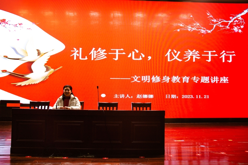 为深入贯彻落实党的二十大精神,全面提升青年学子的文明礼仪素养,塑造新时代老员工良好形象。11月21日晚,公司开展“礼修于心,仪养于行”文明修身教育专题讲座,讲座由辅导员赵娜娜主讲,2022级、2023级员工共600余名参加。