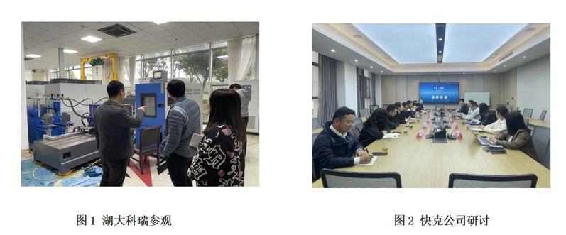 在湖大科瑞(江苏)检测技术有限公司,企业技术经理带领团队老师参观了企业不同的测试车间,详细介绍了企业现状和发展、岗位需求、员工待遇、招聘要求等情况,团队老师结合目前员工生源情况、专业课程设置等方面详细介绍本专业基本情况,并展开深入交流。