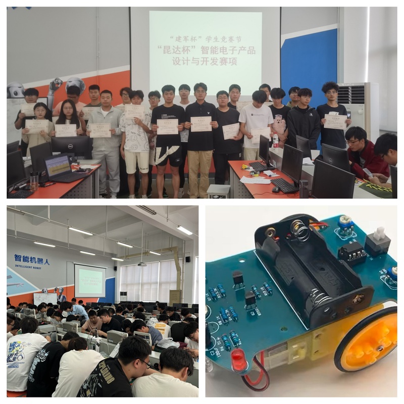 《智能电子产品设计与开发》赛项内容包含理论考核与电子产品电路的设计、焊接与调试两个部分,总时长2小时。球盟会23级同学积极报名、认真准备,经过两个小时紧张激烈的比赛,最终决出一等奖5组、二等奖10组、三等奖16组,并为参赛人数较多的班级颁发了“优秀组织奖”。