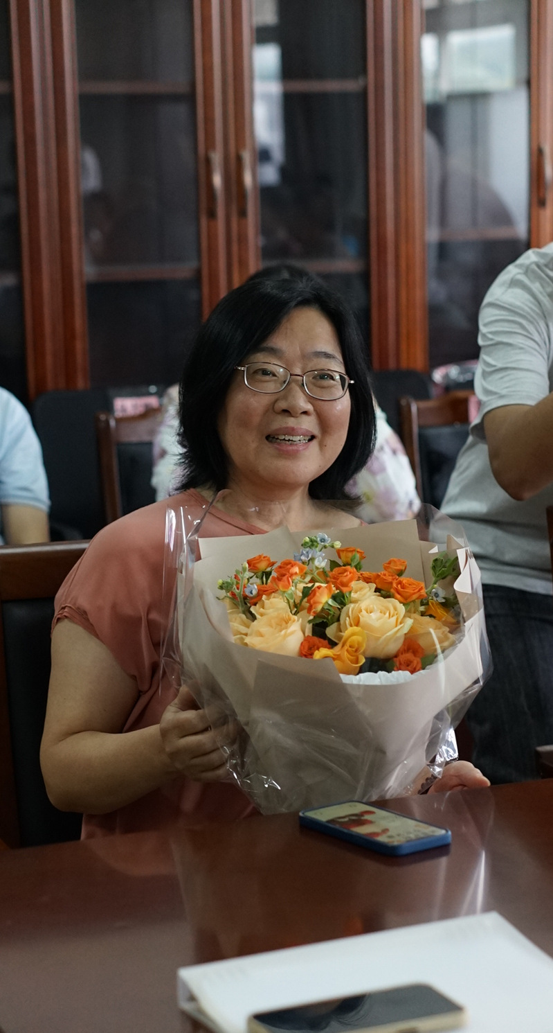在座的老师不由得鼓掌向黄老师表示最诚挚的感谢和最崇高的敬意,在掌声中,吴丽云向黄老师献花,祝愿她在退休后的生活里,岁月静好、平安喜乐。黄老师向在座教师们分享了她近三十七年来的从教经验和心得体会,勉励在座教师不忘教师初心,紧跟时代发展,奋斗育人前线,表示自己将退而不休,继续关注员工成长,关心智控发展。