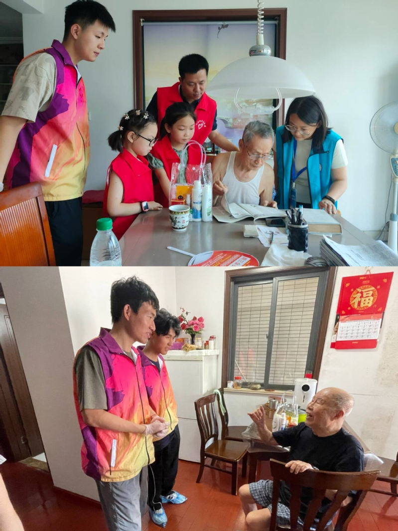 在活动过程中,志愿服务小队走访服务了十余户独居空巢老人,其中包括82岁高龄的常州市劳模、50多年党龄的党员夫妇、91岁的退伍军人等。志愿者们两三人为一组上门为老人们提供系列“暖心”志愿服务,他们手拿降暑包,带着清扫工具,上门与老人们拉家常、整理家务。此外,志愿者们还特别关注了老人们的信息化需求。他们耐心地向老人们介绍了江苏省政务服务APP、“苏服办”APP的功能和操作方法,指导他们如何使用软件平台办理各项业务,从而享受更加便捷的政务服务。最后,志愿者们携带专业摄影设备,耐心为老人调整姿势、选择背景,拍摄肖像照,捕捉他们日常生活中的幸福瞬间,后续冲洗出来装框给予老人留念。