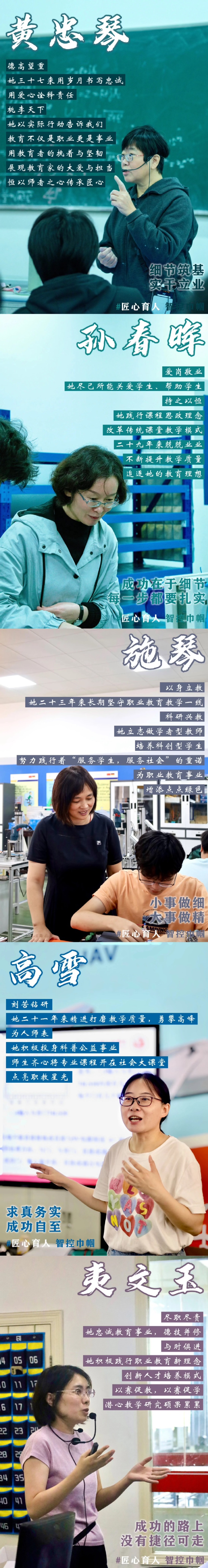 爱岗敬业,智控人将工匠精神贯穿工作,始终干一行、爱一行、钻一行、精一行。精益求精,智控人高标准、严要求、自我进步,深刻领悟工匠精神核心要求。协作共进,智控人发挥团队作用,追求合力领悟新时代的工匠精神。追求卓越,智控人为新时代的发展注入新动能,培育新时代工匠精神的灵魂。匠心独运,奋楫争先既是平凡个人的匠心故事亦是盛大时代的璀璨缩影,在他们中既有蒋正炎、韩迎辉、顾六平、蒋金伟、黄祥源这样的匠心智控人,也有黄忠琴、孙春晖、施琴、高雪、夷文玉这样的巾帼好教师。