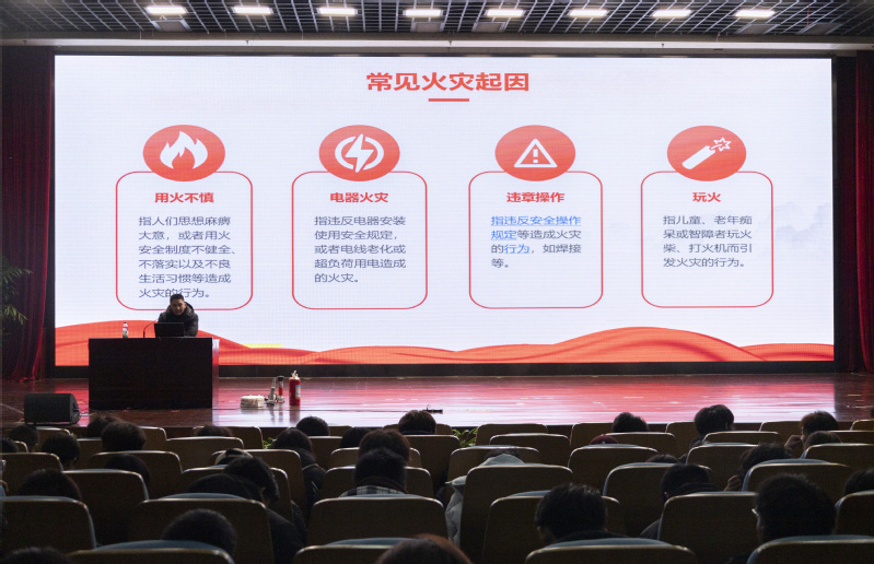 此外,倪鹏站在学长的角度,以提问的形式分析了宿舍中存在的、且容易忽视的消防安全隐患,一个烟头、一根未拔下的充电器、一台超负荷使用的电器,同学们在一次次回答中强化了消防安全意识,从源头上杜绝消防安全隐患。