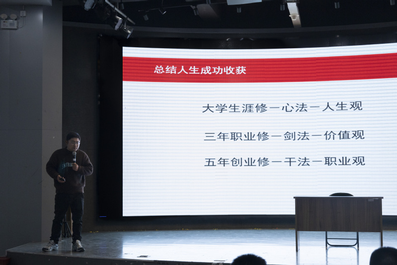 在谈及就业与创业经历时,韩笑更是慷慨分享了自己的宝贵经验。他详细介绍了自己跨越多个行业的职业道路,以及从推销员到三家餐饮项目负责人的经历。他不仅展示了这些项目的成功之处,还深入剖析了项目诞生的具体路径和背后的思考过程,为有志于创业的同学提供了极具价值的参考和启示。他表示,员工干部的任职经历为他的就业创业打下了坚实的实践基础;他鼓励学弟学妹们在平时要注重实践经验的积累,多利用假期和课余时间参加实习、志愿服务等活动,丰富自己的阅历和技能,磨炼自己的意志。