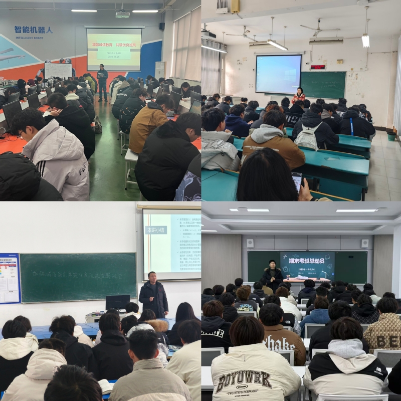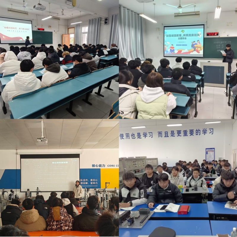 2023级和2024级各班级召开了“加强诚信教育,共筑优良班风”的主题班会。班主任带领同学们深入学习了《你好,大学》违纪处分办法,特别是旷课、考试违纪的严重后果,并告诫同学们务必诚信考试、诚实做人,树立正确的考试观念。