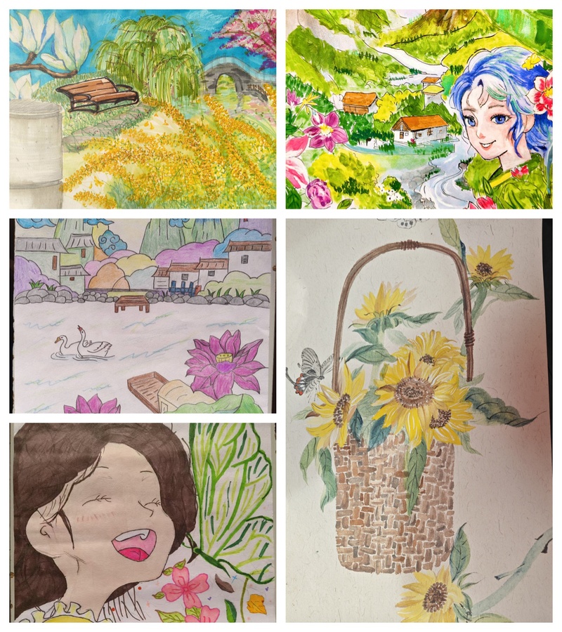 为引导员工在春日时光中发现美好、舒缓压力,用艺术表达内心感悟公司3月份举办 了“给春天的画” 主题绘画活动。活动以 “春天” 为创作载体,鼓励员工通过画笔勾勒自然生机与心灵底色,共收到来自全院 80余幅的作品,在校园内掀起了一场 “绘春心・寻春意” 的春日艺术疗愈之旅。不少作品聚焦校园生活场景:图书馆前的桃花盛开、操场上的风筝飞舞、湖边晨读的剪影……同学们通过观察校园春日细节,将日常感动转化为视觉语言,既展现了审美创造力,也在创作过程中完成了对生活的重新审视与心灵疗愈。