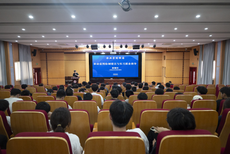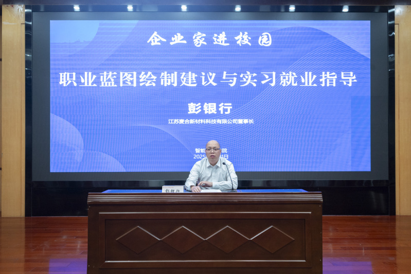 4月12日,公司开展“企业家进校园”系列活动。邀请江苏麦合新材料科技有限公司董事长、公司优秀员工彭银行,为2024级员工开展“职业蓝图绘制建议与实习就业指导”主题讲座。讲座由辅导员潘振宁主持,公司党总支副书记汪洋参加。