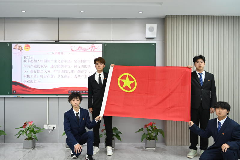 在交流分享环节,工匠团支部优秀员工代表李沐忻结合自身在创新创业大赛的实践与成长经历,分享了对五四精神的理解与感悟。表示,在专业学习与技能提升过程中,始终以五四精神为指引,秉持精益求精的工匠精神,勇于攻克技术难题、敢于突破创新瓶颈。同时,号召全体同学以先辈为榜样,在学习中勤于思考、勇于探索,在实践中锤炼本领、增长才干,努力成长为新时代高素质技术技能人才。随后,全体青年学子在领誓人的带领下,重温入团誓词,“我志愿加入中国共产主义青年团,坚决拥护中国共产党的领导……”一句句誓言字字千钧,掷地有声,表达了团员青年对共青团组织的无限忠诚和为共产主义奋斗终身的坚定决心。