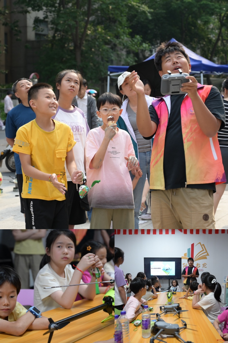 球盟会师生党员则带来了一场别开生面的无人机科普秀。通过科普讲解实物展示、模拟飞行,居民们直观感受到人工智能技术的魅力。随着无人机缓缓升空,在空中灵活盘旋、翻转,现场居民的目光也随之移动,不时发出阵阵惊叹。积极分子们还邀请居民亲身体验无人机操作,让大家近距离感受科技的魅力,激发了社区居民尤其是青少年对科学技术的浓厚兴趣。